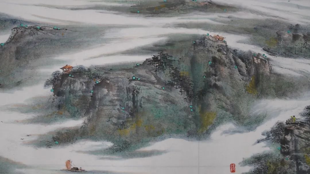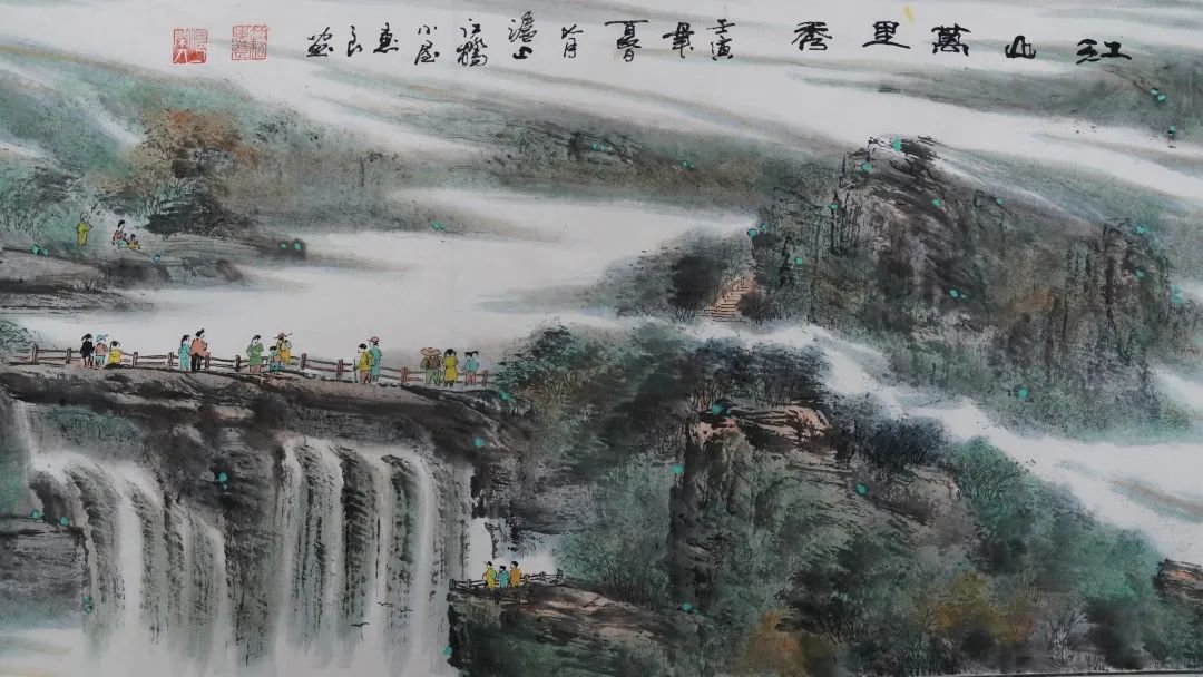 日前,在江桥镇文体中心三楼的墨香阁内,一幅百米丹青长卷徐徐展开。万里长城、黄果树瀑布、太湖源、富春江、天生三桥……众多山水名胜尽收眼底。山脉峰峦跌宕起伏,云雾缭绕虚实相间,唐诗宋词的韵味跃然纸上。