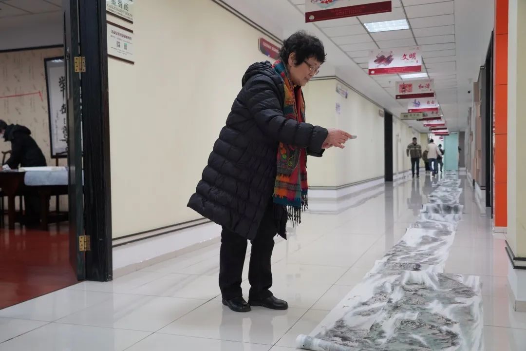 这幅名为《江山万里秀》的长卷,出自江桥书画爱好者籍惠良。他今年67岁,曾在上海面粉厂工作,工作之余喜欢写写画画。目前,他已专注山水画创作40余年。