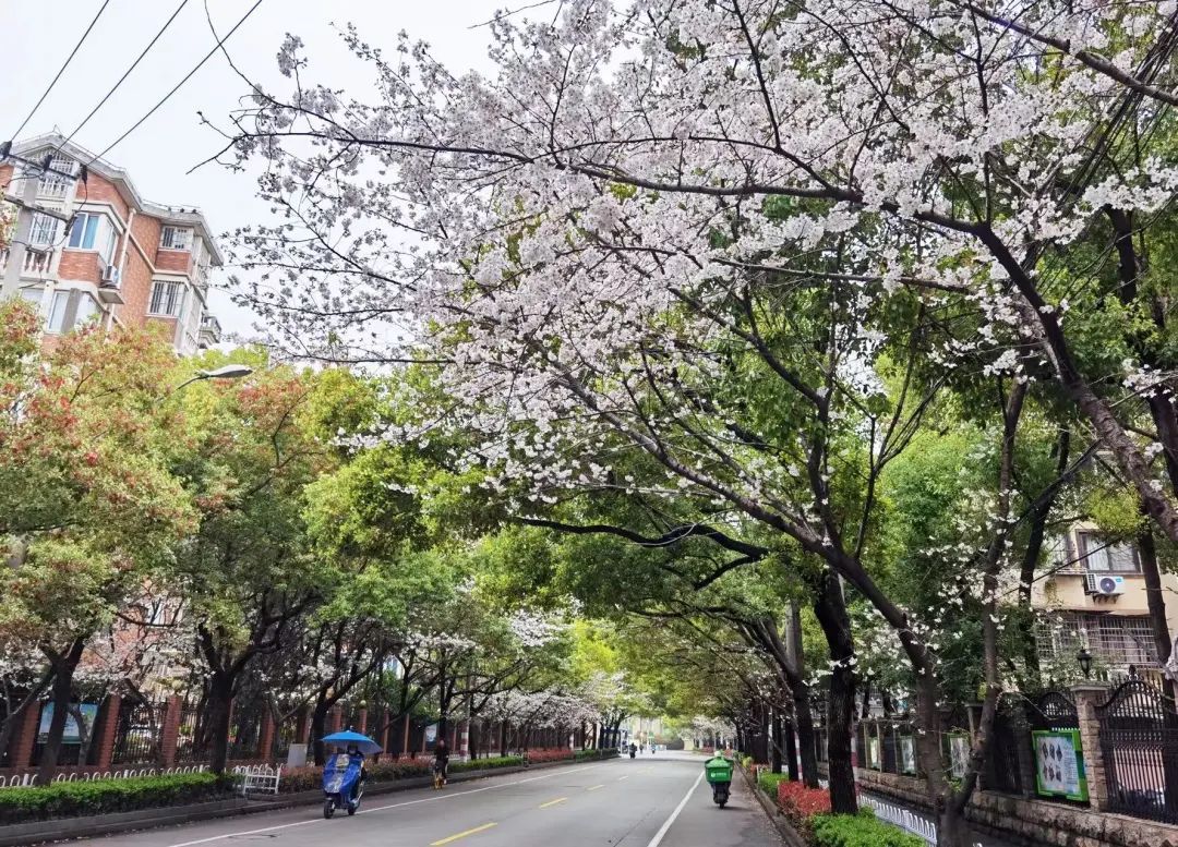 说起新二路,算是宝山的一个“网红”樱花打卡地了。每年的3、4月份,都会有许多居民前来赏樱。漫步在粉白色的樱花路上,呼吸着雨后清新的空气,迎面吹来春天的微风,舒适惬意。来来往往的车水马龙间,夹杂着城市的烟火气息,让人倍感温暖和亲切。