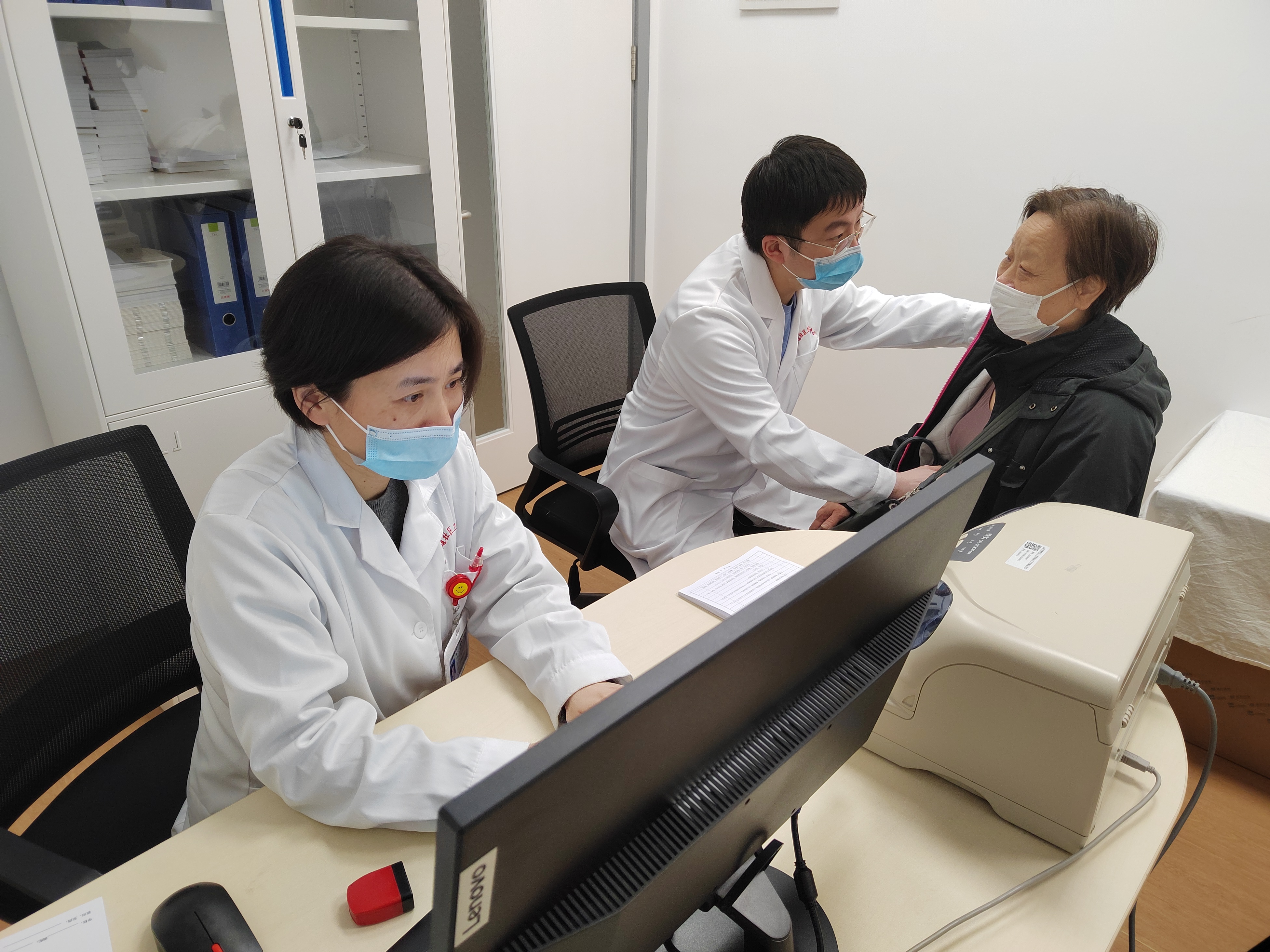 “这个药还是要吃的,你的低密度脂蛋白要控制在2.6mmol/L以下,这里写的3.376mmol/L是对于正常人来说的,当合并有其他基础疾病时候,标准是不一样的。”走进万里社卫全科诊室,普陀区中心医院心内科副主任医师郜俊清和万里社卫全科副主任医师倪金燕正在一起接诊患者倪阿姨。两位医生同时坐诊,不仅为倪阿姨解答了用药的疑问,专科医生还针对性地做了用药指导。