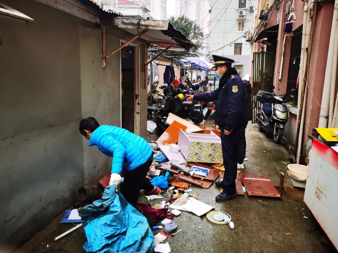 情况核实清楚后,执法队员便依托城管社区工作室,在居委会干部的帮助下,联系到搭建上述违建的当事人,告知其该违建房屋不仅占用了小区公共空间,影响其他居民进出,而且有碍市容观瞻,房屋里面的脏乱杂物也易引发各类安全事故;同时,也不利于小区后续即将进行的城市更新改造。