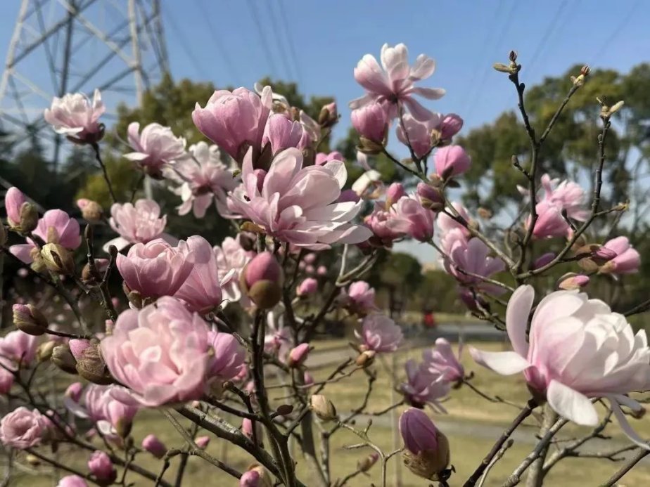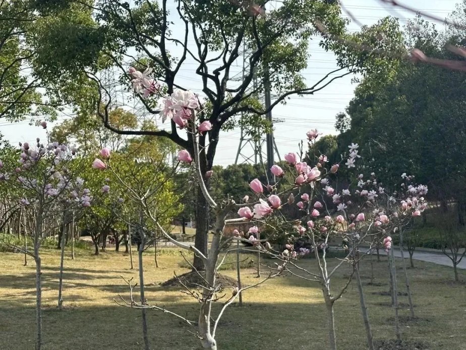 在刚开园不久的木兰公园的特色植物区,82株星花玉兰傲然盛放,重瓣如星、优雅迷人。