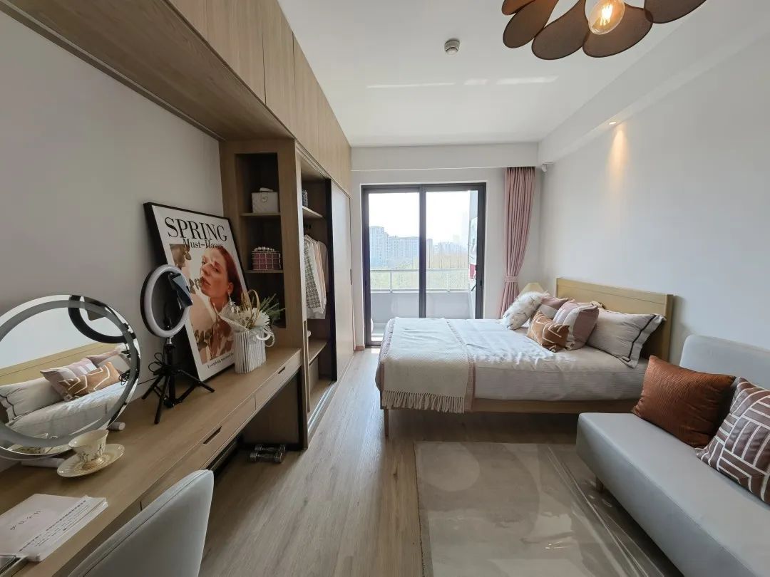 光华社区位于杨浦区学德路27弄。社区以小户型为主,租金从3500-9800元不等。以一套建筑面积约27平方米一居室样板房为例,这里采光充足,从智能门锁、品牌家电到全屋收纳,处处可以看到对生活细节的考量,十分适合单身青年居住。来到阳台,映入眼帘的就是复旦大学江湾校区。宁静而优美的校园景色,满眼葱绿,生机盎然。