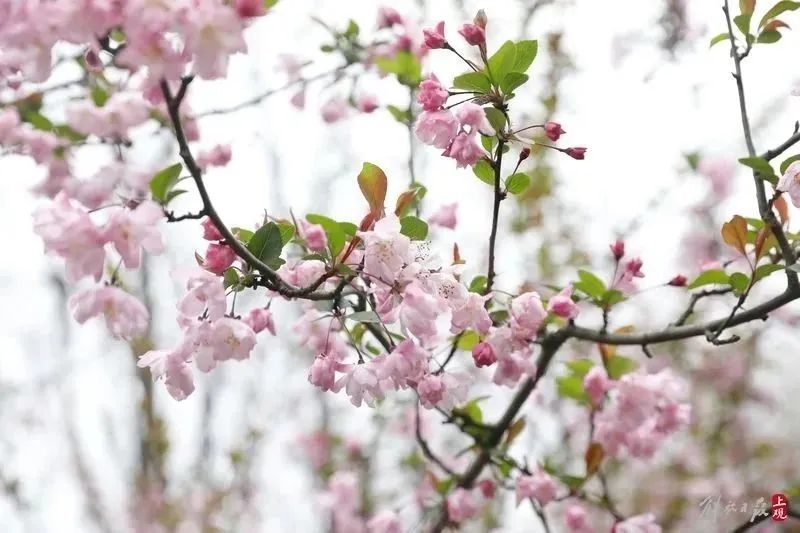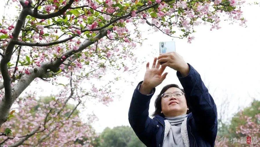 上海西南最大“绿肺”闵行体育公园内千米花道,樱花将谢海棠又红,多个品种的观赏类花木争相绽放,给游客呈现出“立体花海”的奇妙视觉体验。