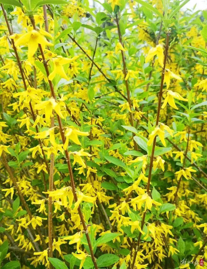 也叫“黄金条”(为连翘与金钟花的结合种)。主要分布于我国长江流域一带,公园和庭院等栽培较为普遍,观赏之外还有药用价值,可作清热解毒用。