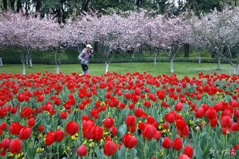 阳春三月,申城各大公园绿地中花开正盛,市民游客徜徉其中,尽享移步换景,感受满目芬芳。