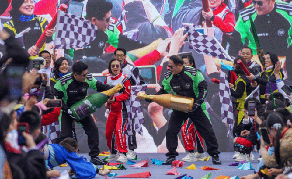 从特种部队到机长,从《八仙过海》到《上海滩》……文来初中理事长仇忠海和校长柏彬带领行政团队表演的节目历来是狂欢节的亮点。今年,校长变身帅气“赛车手”,带领团队上演了赛车主题的旗舞,诠释了“飞驰文来”的意境。