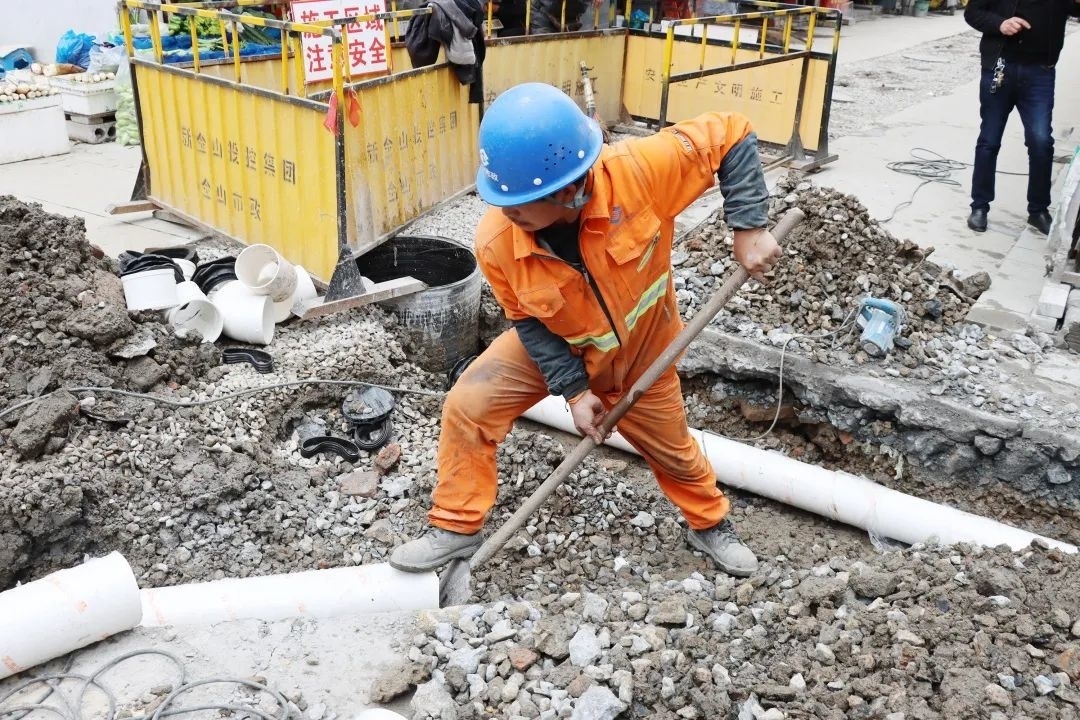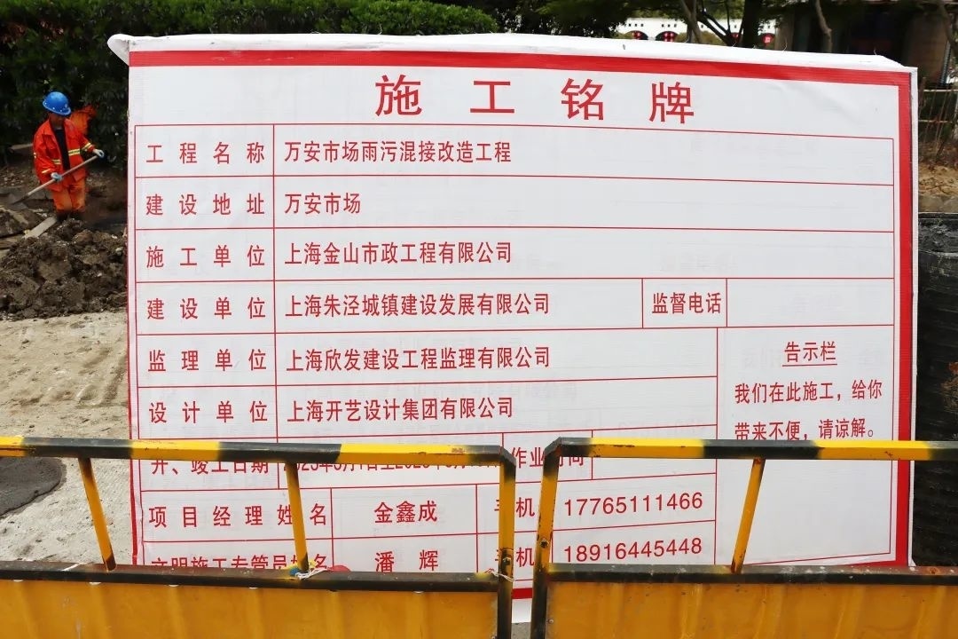近日,朱泾镇万安市场启动了全面的雨污混接改造工程,记者在万安市场看到,工人们正在进行路面开挖、雨水管污水管的铺设。