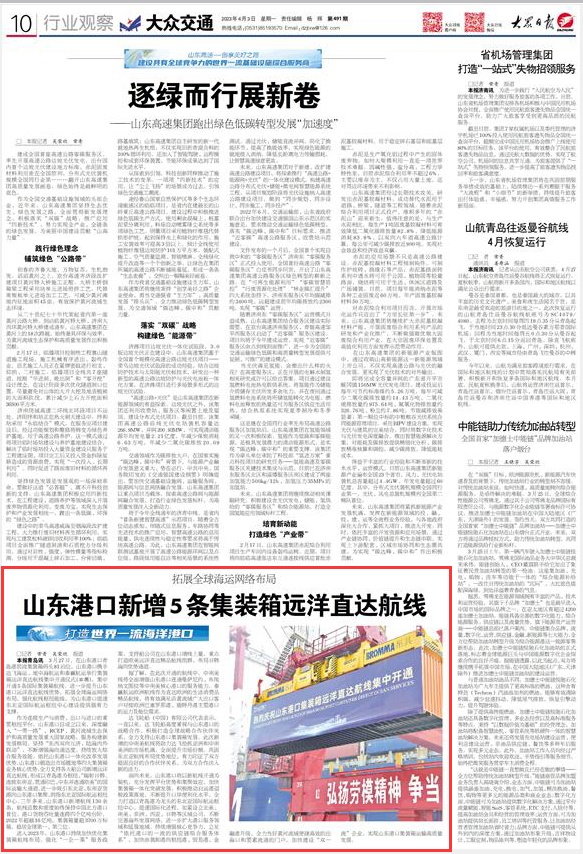 面向未来,山东港口将以新航线开通为契机,充分发挥平台优势和集聚效应,加快集装箱一体化突破发展,积极推动启运港退税政策落地,不断提升口岸便利化水平,全力打造以青岛港为龙头的东北亚国际航运枢纽中心。提速国际化进程,加紧设立北美、南美、非洲、西亚、日韩等区域公司,不断完善海外发展网络,进一步扩大港口服务领域和延展地域。持续增强核心竞争力,立足“依托港口的一流的供应链综合服务体系”,加快由装卸港向枢纽港、贸易港、金融港升级,全力当好黄河流域便捷高效的出海口和要素流通的门户,加快建设“双一流”企业,实现山东港口集装箱运输高质量发展。