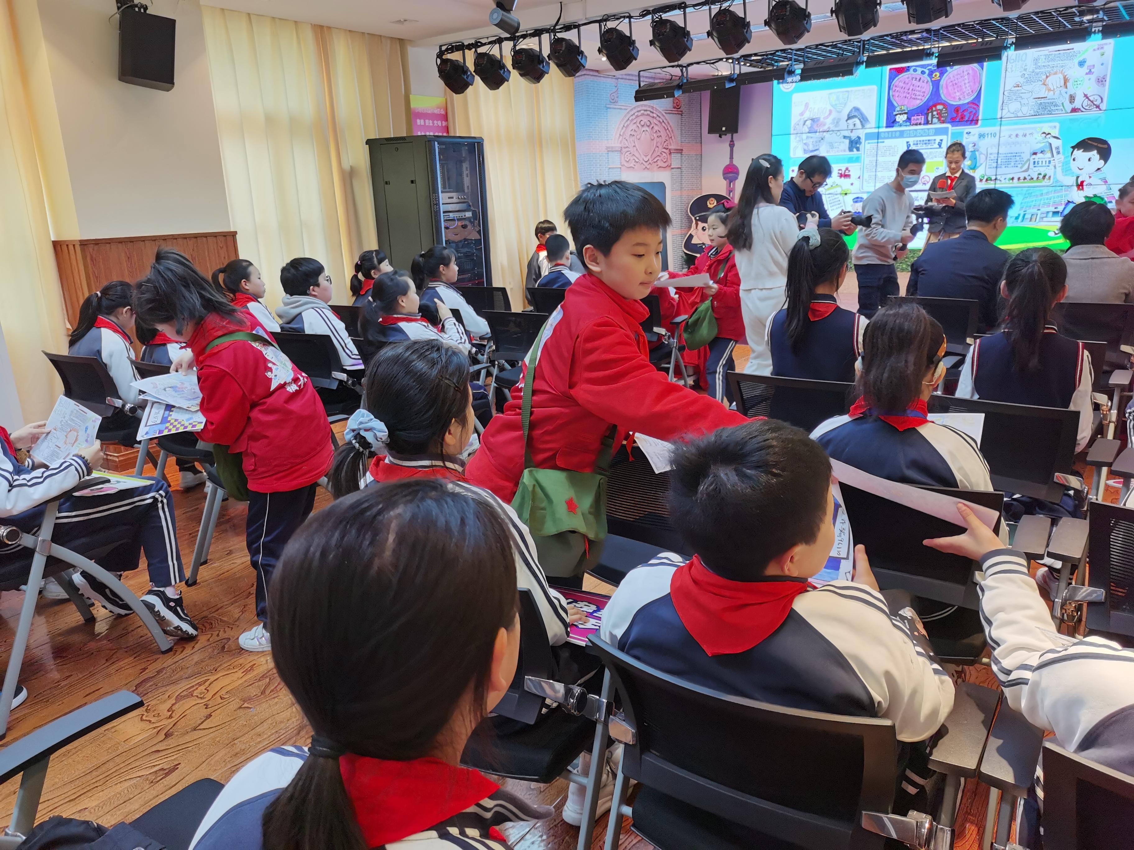 以前的小报童派发传单为迎接上海解放做贡献,今天在黄奕警官的启发下,童报社的小编辑们还将自制的反诈骗宣传单发给每一位同学,让他们走出校园,在每月20日的南京路志愿服务活动中,向周围的亲人、朋友们宣传安全防范的知识,让更多的人提高安全防范的意识。
