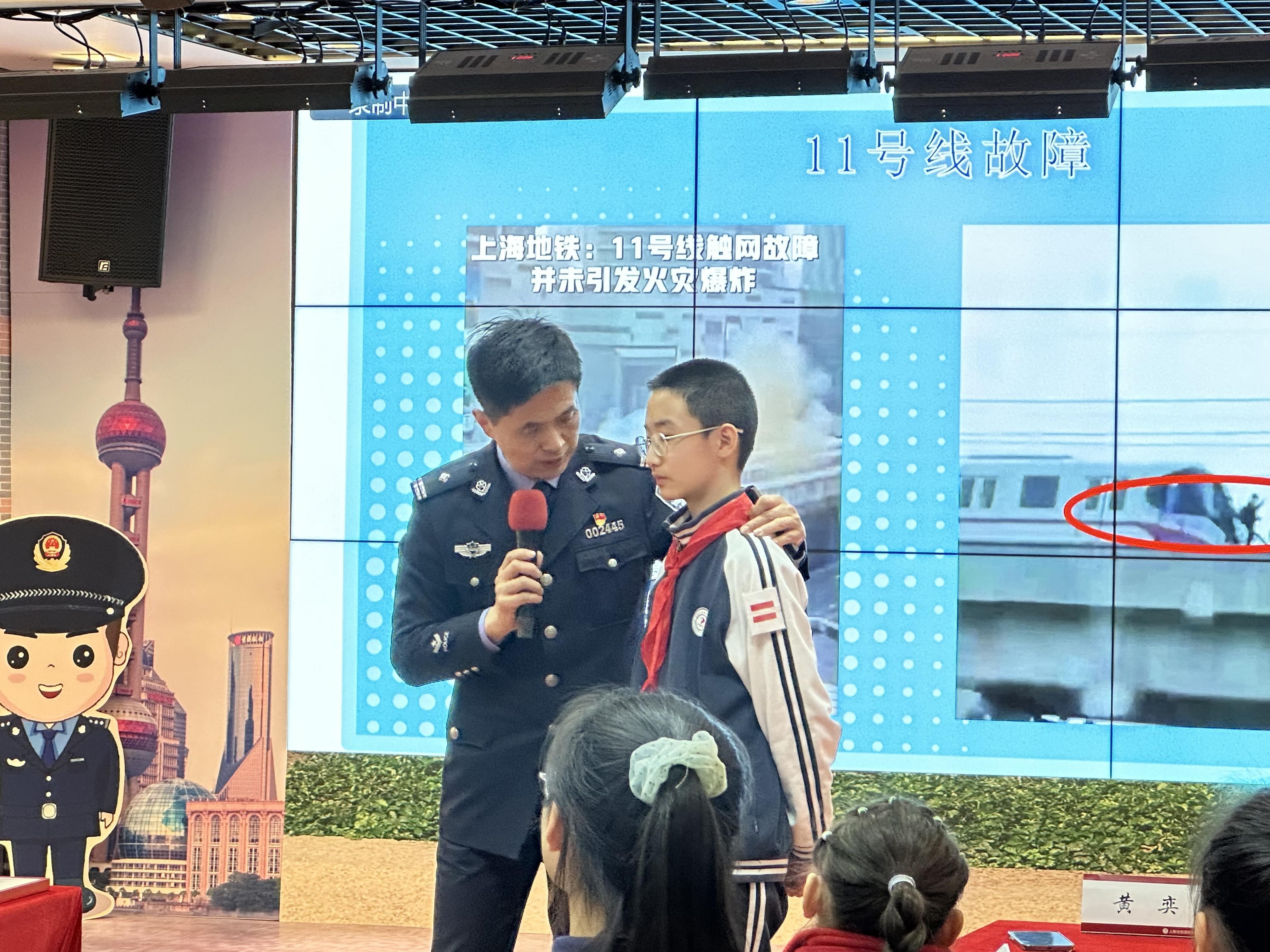 开课伊始,现场的气氛就被黄奕警官风趣幽默的语言“点燃”了。黄奕警官从“安全是最好的礼物”开篇,通过案例讲解和图片展示多元结合的方式,让报报童童们更加直观地认识身边的安全标示、公共安全紧急呼救装置。同时,又以“城市安全有你有我”为切入点,让同学们知道了地铁车厢紧急出口的位置;知道了乘坐地铁时“宁等一辆车,不抢一扇门”;知道了乘坐电梯时要抓紧扶手,注意脚下,不看手机等乘坐地铁的安全知识。报报童童们不仅听得全神贯注,更积地极参与课堂上的互动。一个小时的安全课堂中,大家在掌声、笑声中把安全知识牢牢记在心上。