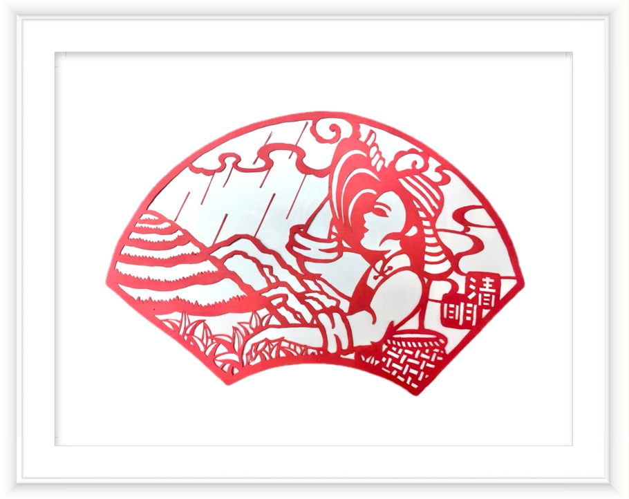 清明,不仅是一个节气,更是一种文化概念。清明的美,是风光之美,也是文化之美。区级非遗传承人、枫林街道“上海剪纸”传承队队员鲍立峰为大家带来了清明主题剪纸作品——茶山雨境。