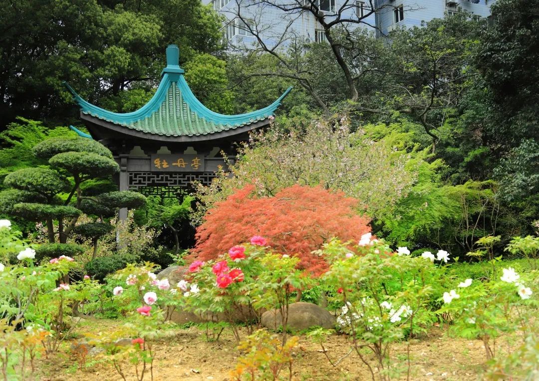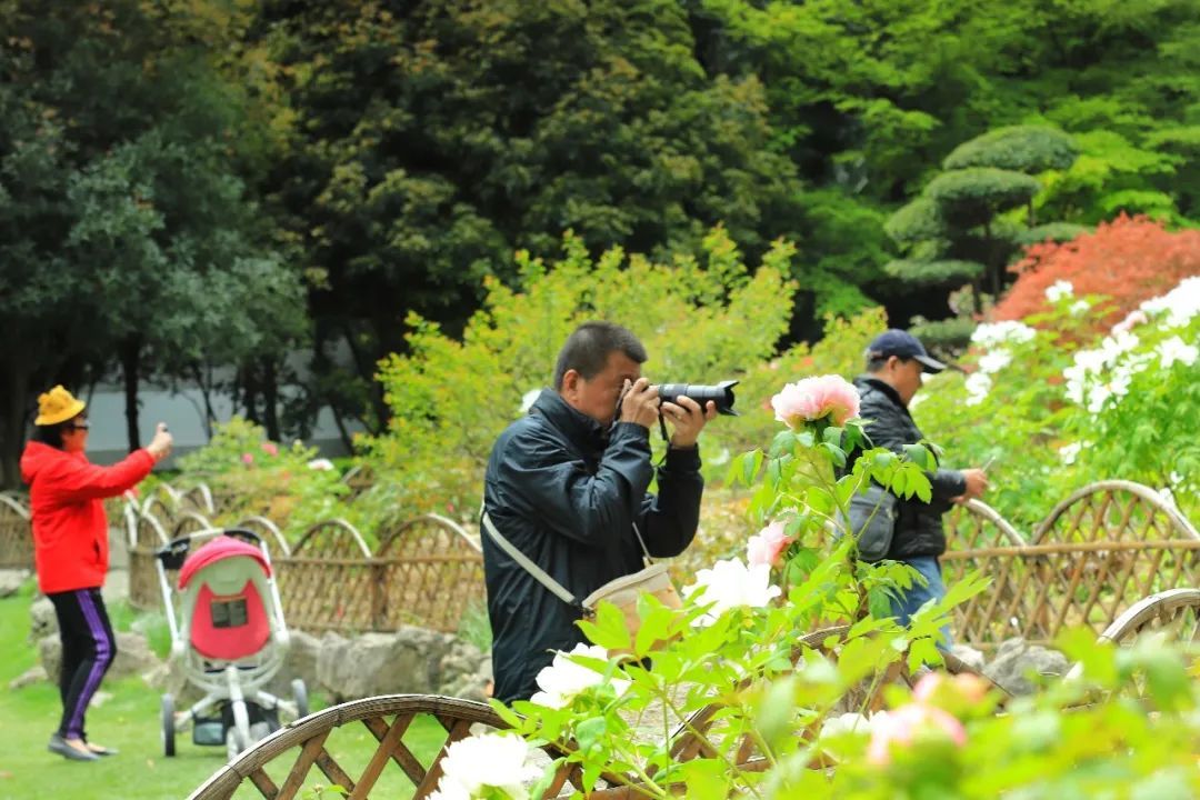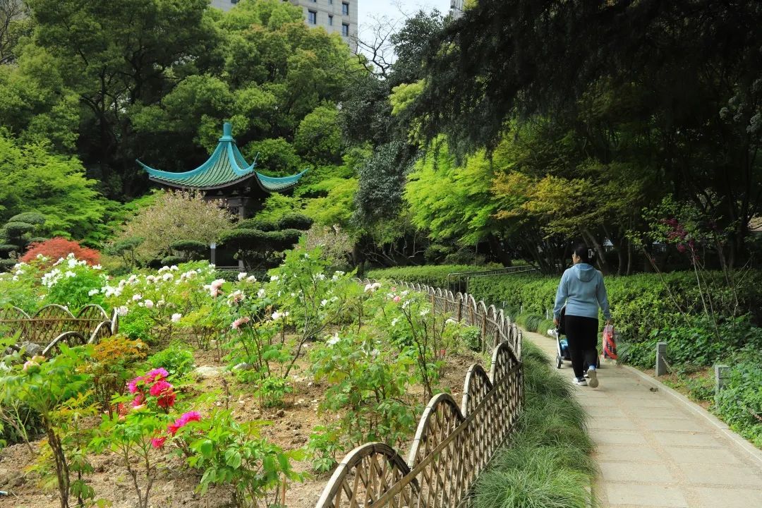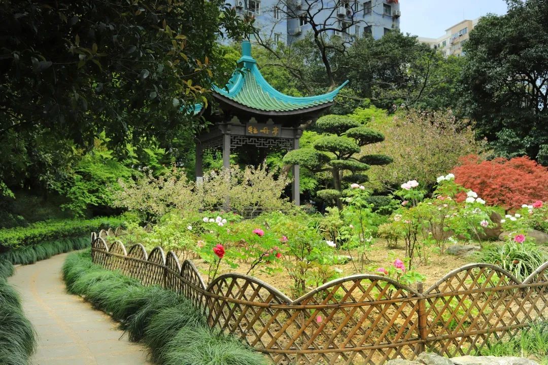天山公园里,牡丹花坛旁建有牡丹亭,古风凉亭与雍容牡丹相互映衬,最是出片。