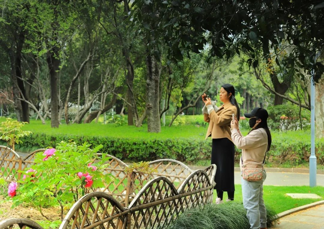 “一夜春雨润,牡丹花盛开。”“宁宁”在天山公园看到,牡丹花坛里的牡丹已经进入盛花期,红色、粉色、白色、黄色的牡丹娇艳欲滴,吸引了不少市民游客前来观赏。