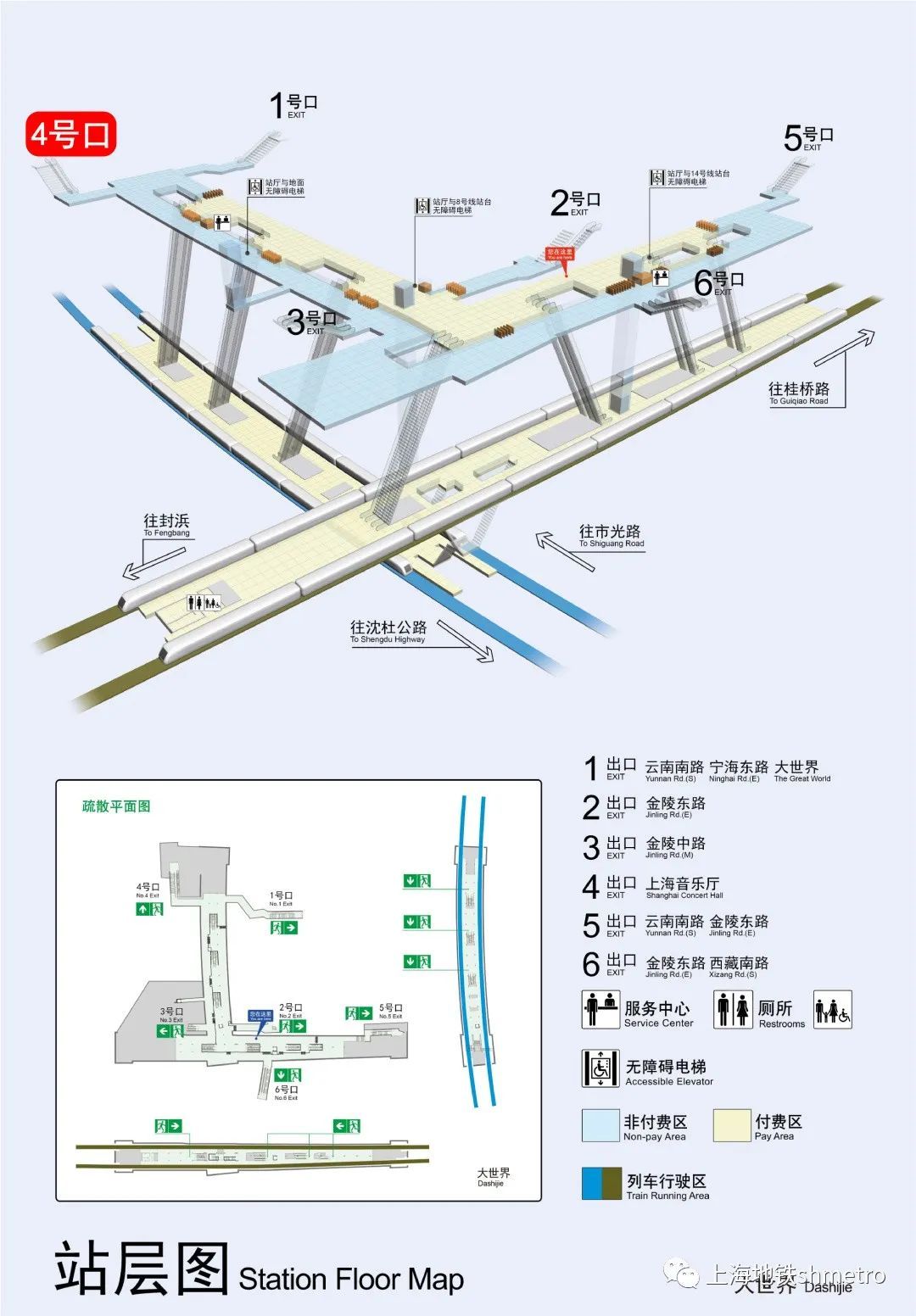 为配合施工,8、14号线大世界站4号口于2023年4月15日起临时封闭,请乘客从1、3、5、6号口进出车站,谢谢配合。