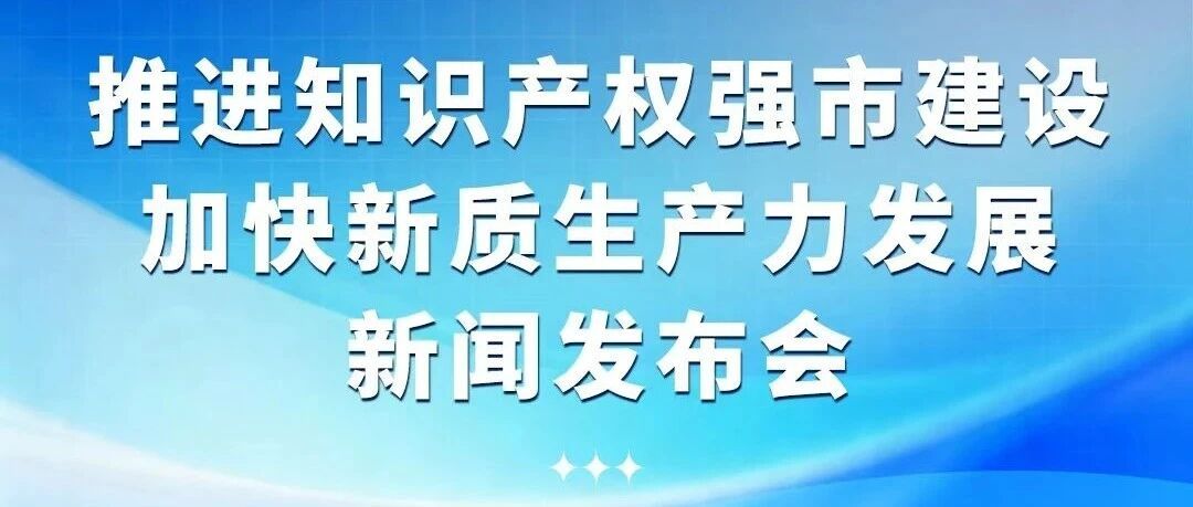 直播预告丨“推进知识产权强市建设 加快新质生产力发展”新闻发布会
