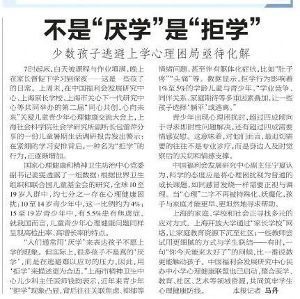 【智库声音】新民晚报 | 包蕾萍等:不是“厌学”是“拒学”少数孩子逃避上学心理困局亟待化解