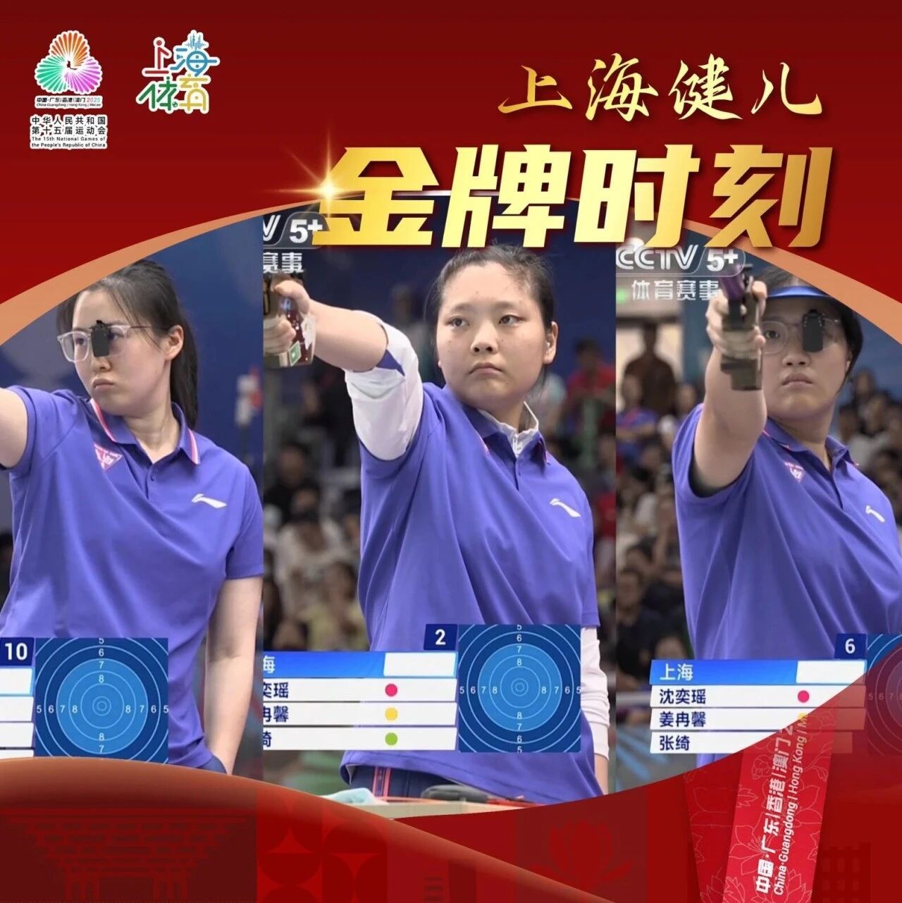 金牌!静安“神枪手”全运会夺魁!上海队获女子10米气手枪团体赛冠军