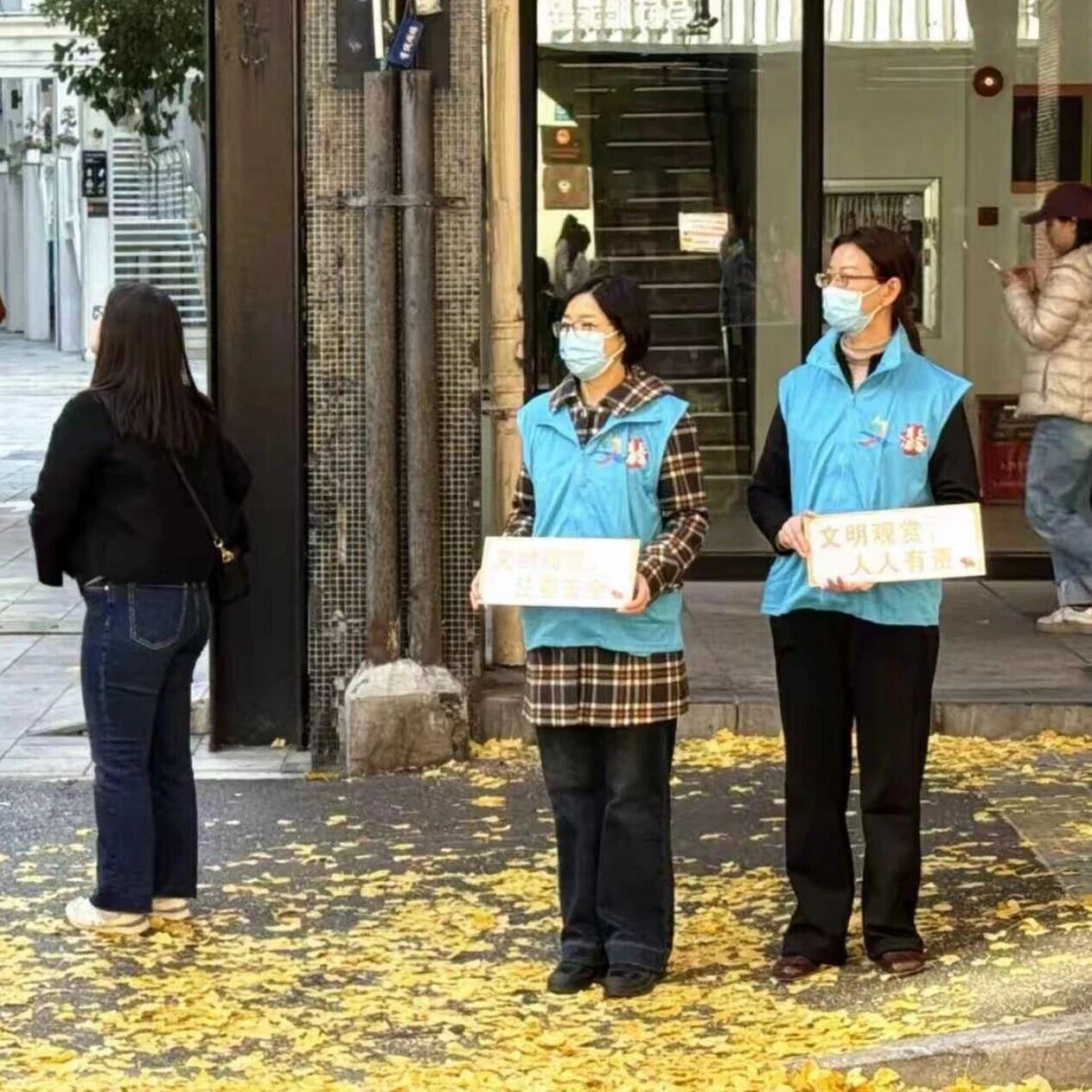 银杏黄+志愿蓝,局门路上文明使者绘“杏”福!