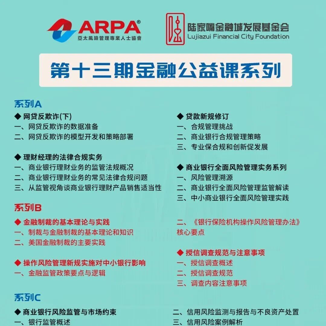【协会动态】ARPA协会联合陆家嘴金融城基金会之“陆家嘴金融城合规人才培养计划”暨第十三期金融公益课(系列B)本周正式开播