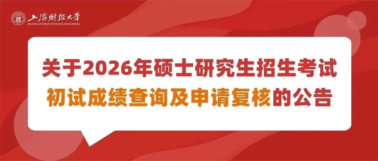 硕士招生 | 上海财经大学关于2026年硕士研究生招生考试初试成绩查询及申请复核的公告