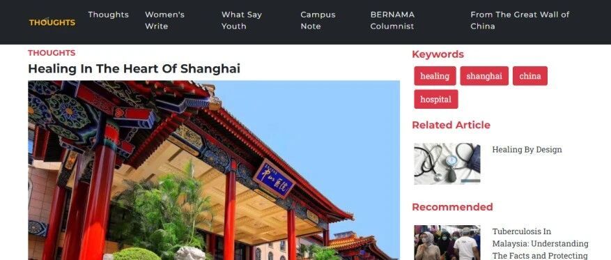 马来西亚国家通讯社转发!知名学者笔下的上海中山医院,满是温暖与专业!