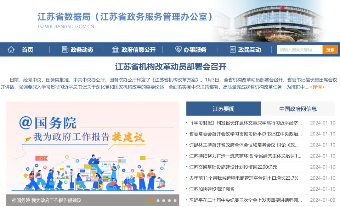 近日,江苏省数据局(江苏省政务服务管理办公室)网站亮相,其网址沿用了此前江苏省政务服务管理办公室的网址。