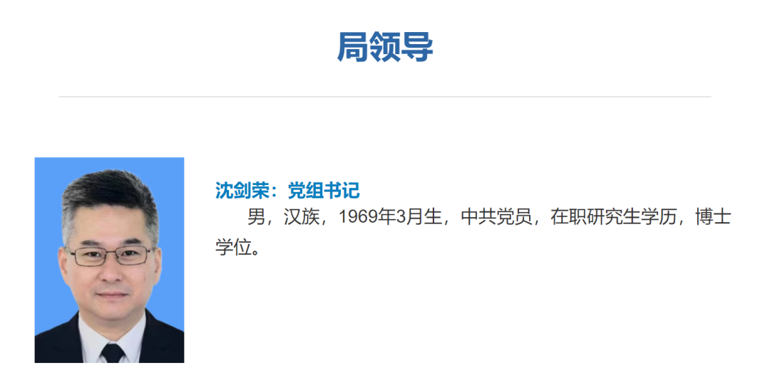 目前,江苏省数据局(江苏省政务服务管理办公室)网站“局领导”一栏显示,沈剑荣任局党组书记,李秀斌为局党组副书记,王万军、张旻、吴中东为党组成员。