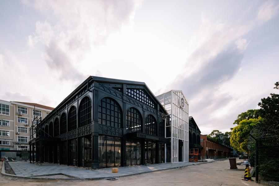 有一栋建筑,类似英国火车站风格,外形为全黑与全白金属结构,内部点缀红色,用色大胆而先锋,是推翻了几个方案后才推敲出如今的模样。