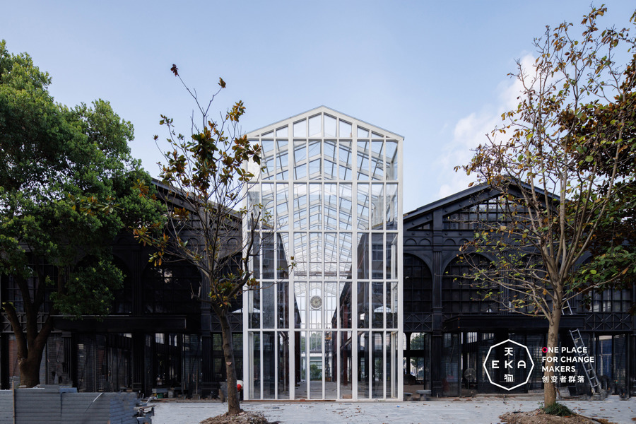 如今,这批厂房焕新后,成为网红打卡热点——EKA·天物。有媒体总结它的特色:约30栋风格迥异的建筑,组成免费好逛的露天建筑艺术馆。