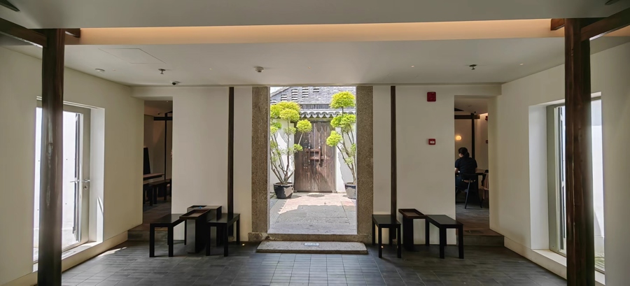 445栋仓库“半仓”由蒋华健操刀,基本保留厂房老建筑形态,以古朴、深灰为基调,兼有互动交流区与静思冥想区。