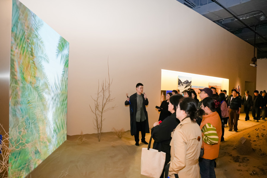 在“自然”板块,高世强的数字作品《山水:如何度过夜晚?》以唐诗为灵感,让观众窥见敦煌乃至甘肃其他地域的城市面貌、文化和自然遗产,以及能源技术制造的新景观。