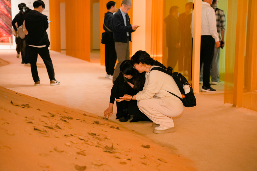 特别的是,“境象敦煌”还通过展陈设计,将敦煌的自然风光置入展厅,为观者设置了逐步走近的情境,以期让观者暂时忘却知识,回归身体感受,去体会空间的变化,闻到气味,听见声音,看见光,再重新开始思考。