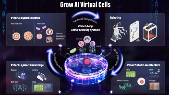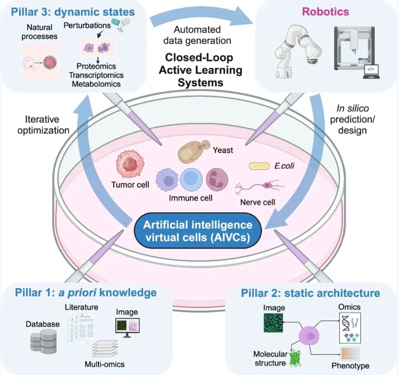 述评还进一步提出了闭环主动学习系,结合AI预测与自动化实验,实现自适应优化,加速细胞建模与科学发现。为确保AIVC概念的可行性,研究人员建议从酵母等较简单但信息丰富的细胞模型入手,并逐步扩展到更复杂的人类癌细胞系,以推动AIVCs在生物医学、药物开发和个性化医疗中的广泛应用。