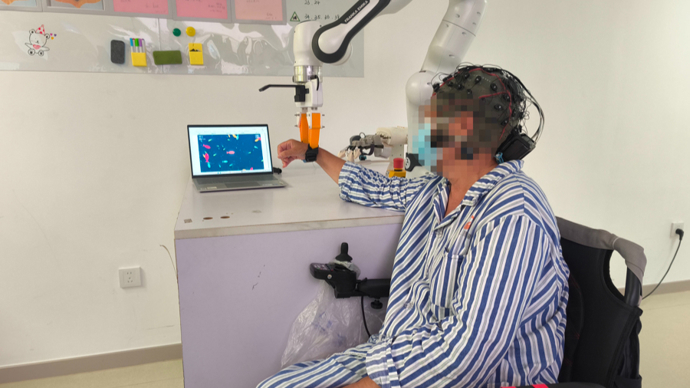 我国现阶段康复服务体系尚处于发展初期,区域发展不均、专业力量薄弱等问题依然存在,康复评估主观依赖性强、训练方式标准化程度低,也成为阻碍康复效果提升的重要因素。团队成员介绍:“我们迭代了四代结构,才慢慢找到适合于康复领域的机械臂末端。”在研发过程中,团队一举破解“感知滞后、反馈粗糙、方案同质”三大技术难题,创新性地构建了集意图识别、训练控制与反馈评估于一体的闭环系统。