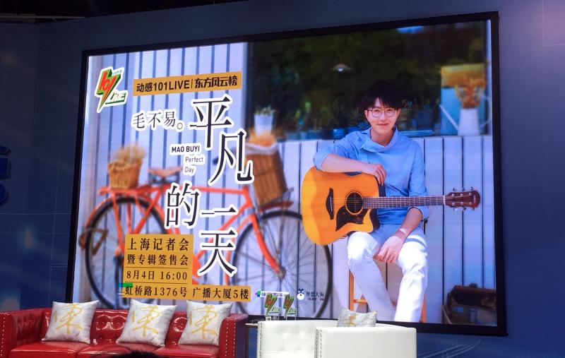 8月4日,“动感101Live—东方风云榜”在上海广播大厦举办了毛不易《平凡的一天》上海记者会暨专辑签售会。现场,毛不易分享创作心得,并演绎了《平凡的一天》《给你给我》两首广受好评的新歌。